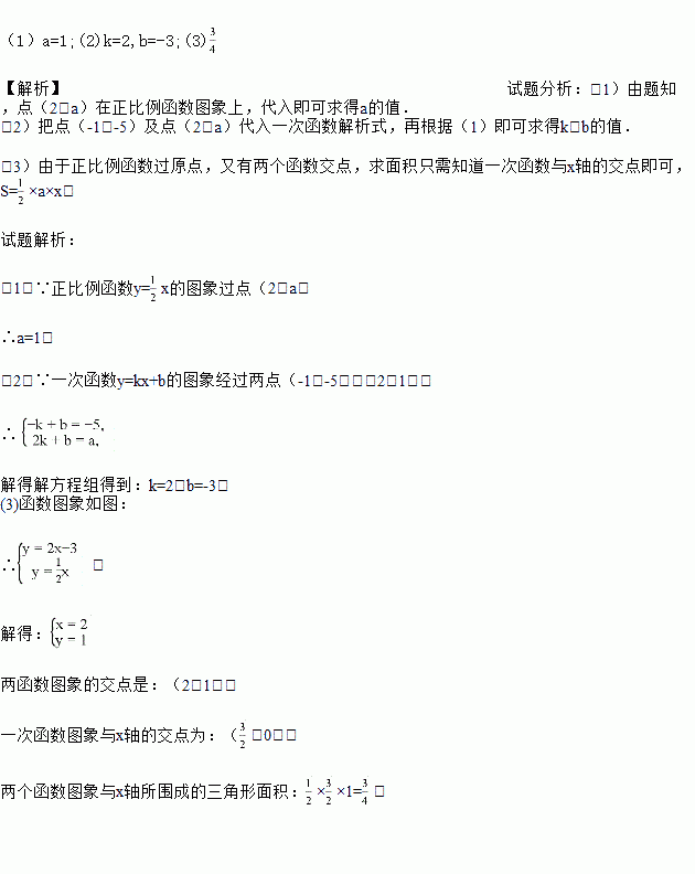 已知一次函数y=kx+b的图象经过点(-1,-5),且与正比例函数y=x的图象相交于点(2,a),求: