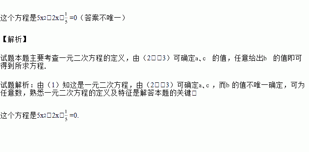 学完一元二次方程后,在一次数学课上,同学们说出了一个方程的特点: