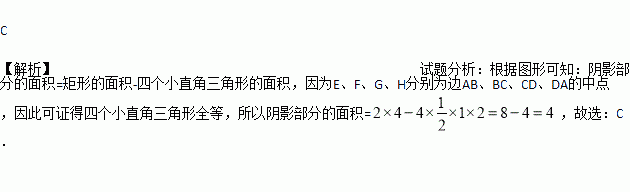 已知:如图,在矩形ABCD中,E、F、G、H分别为边AB、BC、CD、DA的中点.若AB=2,AD=4,则图中阴影部分的面积为( )