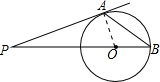 .分析:连接OA,利用切线的性质得到AP与AO垂直,由OA=OB,利用等边对等角得到一对角相等,利用外角性质求出∠AOP的度数,即可求出∠APB的度数.