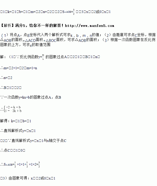 的图象相交于A、B两点,A点坐标是(﹣2,1),B点坐标(1,n);