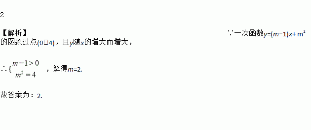 一次函数y=(m-1)x+m2的图象过点(0,4),且y随x的增大而增大,则m=_________.