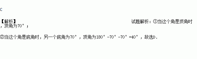 A. 70° B. 40° C. 70°或40° D. 70°或55°