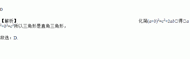 若一个三角形三边a,b,c满足(a+b)2=c2+2ab,则这个三角形是( )