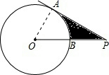 分析:连接OA,由AP为圆的切线,得到OA与AP垂直,在直角三角形OAP中,设OA=OB=x,利用勾股定理列出关于x的方程,求出方程的解得到x的值,即为圆的半径,求出圆心角的度数,利用弧长公式求出弧AB长,即可确定出阴影部分的周长,直角三角形OAP的面积减去扇形AOB面积即可确定出阴影部分面积.
