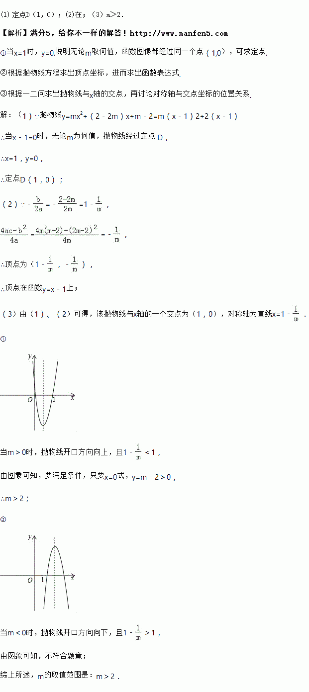 (1)无论m取何值,该抛物线都经过定点 D.直接写出点D的坐标.