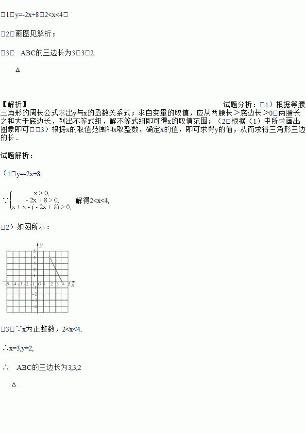 已知等腰△ABC的周长为8,腰长为x,底边长为y.
