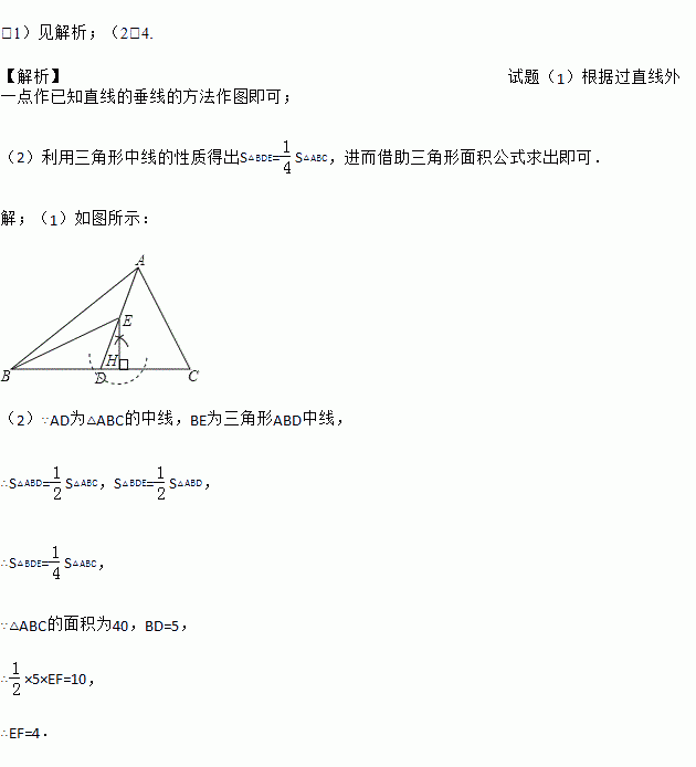 (1)用圆规和无刻度的直尺在△BED中作BD边上的高EF;