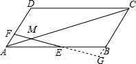 14.分析 延长FE交CB的延长线于G,利用已知条件证明△AFE≌△BGE,可得到AF=BG,再有平行线四边形的性质可证明△AFM∽△CGM,利用相似三角形的性质即可求出$\frac{CM}{MA}$的值.