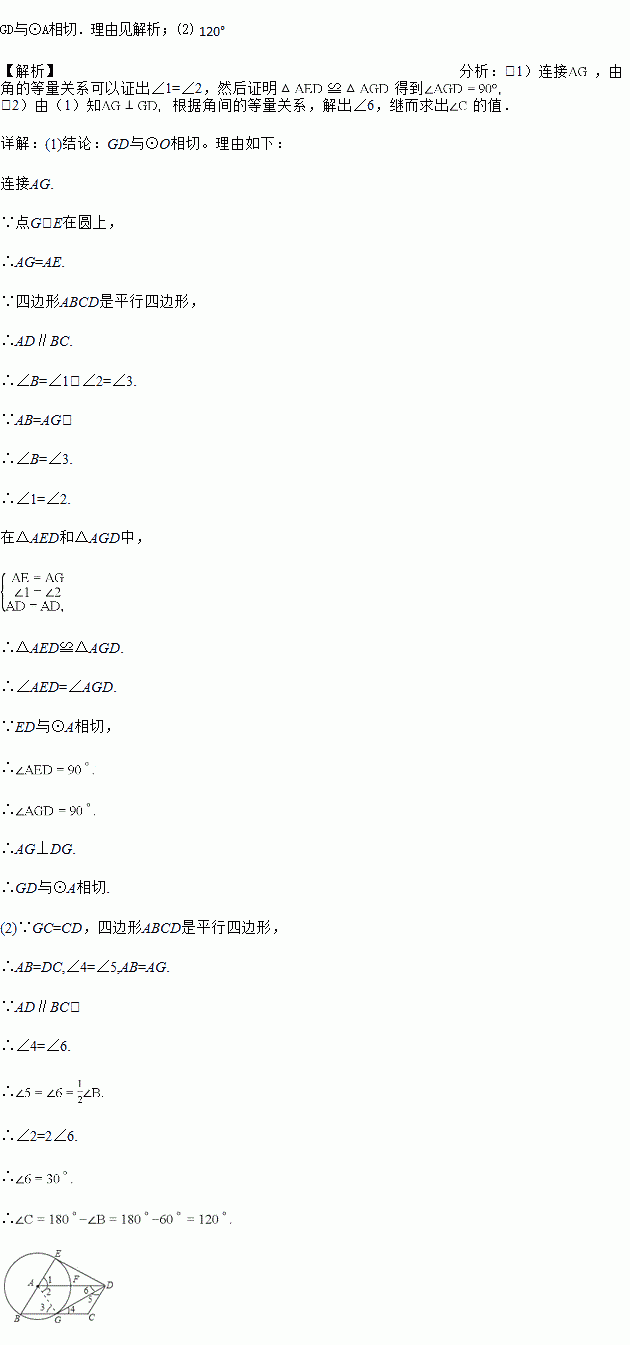 (1)若ED与⊙A相切,试判断GD与⊙A的位置关系,并证明你的结论;
