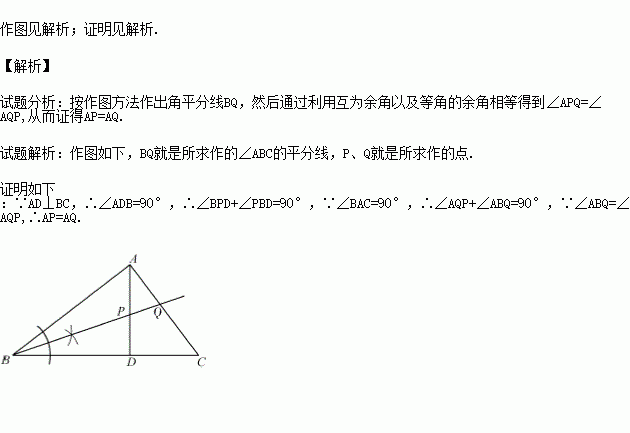 如图,中,,垂足为.求作的平分线,分别交于,两点;并证明.(要求:尺规作图,保留作图痕迹,不写作法)