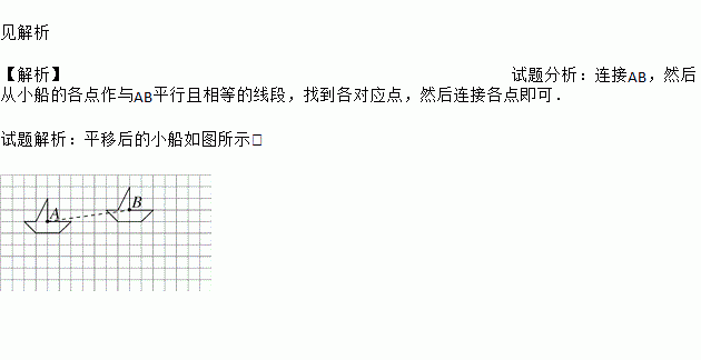 如图,有一条小船,若把小船平移,使点A平移到点B,请你在图中画出平移后的小船.