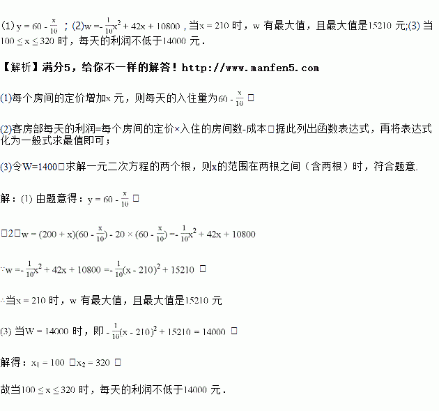 为何值时,客房部每天的利润不低于![]()