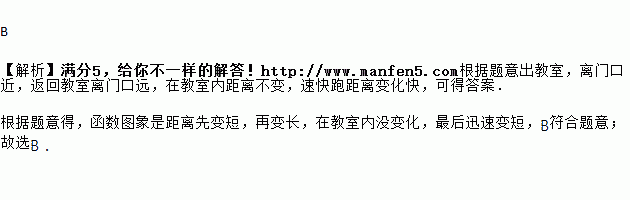 上周周末放学,小华的妈妈来学校门口接他回家,小华离开教室后不远便发现把文具盒遗忘在了教室里,于是以相同的速度折返回去拿,到了教室后碰到班主任,并与班主任交流了一下周末计划才离开,为了不让妈妈久等,小华快步跑到学校门口,则小华离学校门口的距离y与时间t之间的函数关系的大致图象是( )