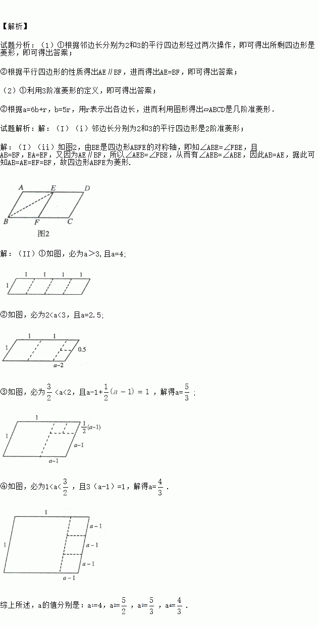 (i)邻边长分别为2和3的平行四边形是_________阶准菱形;