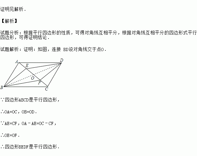 已知:如图,在平行四边形ABCD中,点E、F在AC上,且AE=CF.