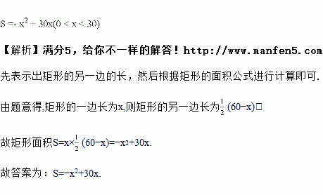 如图所示,有一根长的铁丝,用它围成一个矩形,写出矩形面积与它的一边长之间的函数关系式________.
