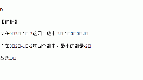 在0、2、﹣1、﹣2这四个数中,最小的数为( )