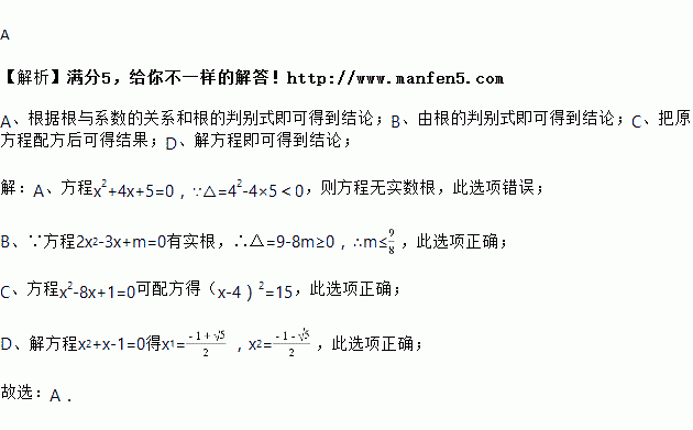 C. 方程可配方得