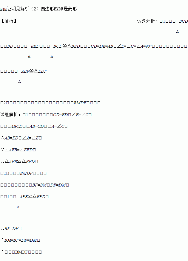 (2)若将折叠的图形恢复原状,点F与BC边上的点M正好重合,连接DM,试判断四边形BMDF的形状,并说明理由.