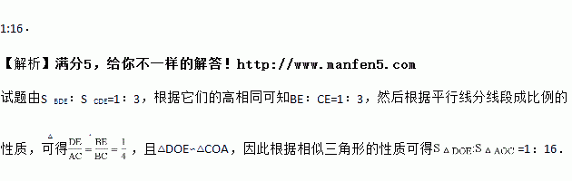 如图,D、E分别是△ABC的边AB、BC上的点,DE∥AC,若S△BDE:S△CDE=1:3,则S△DOE:S△AOC的值为______.
