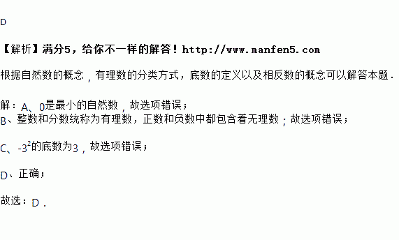 A. 是最小的自然数 B. 正数、零、负数统称为有理数