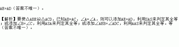 如图,AB=AC,要使△ABE≌△ACD,应添加的条件是 (添加一个条件即可).