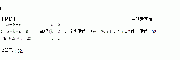 已知式子,当时,其值为4;当时,其值为8;当时,其值为25;则当时,其值为__________.