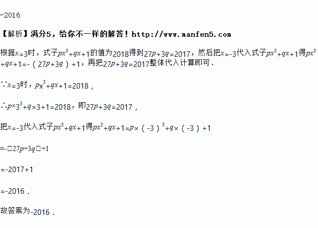 当x=3时,px3+qx+1=2018,则当x=﹣3时,px3+qx+1的值是_____.