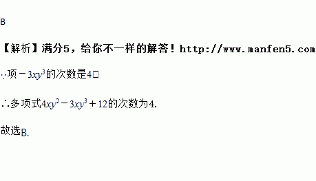 多项式4xy2-3xy3+12的次数为( )