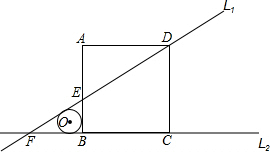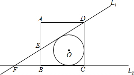 如图,矩形ABCD中,AD=8,AB=9,AE=6,过D、E两点作直线L1与BC所在的直线L2交于点F.点O是直线L1与直线L2间的一动点,以O为圆心作⊙O,使⊙O与L1相切,又同时与矩形两边所在的直线相切,此时圆的半径是________.