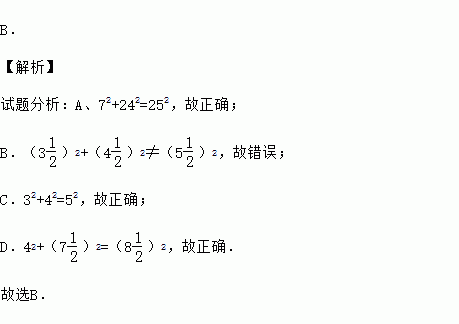 如果下列各组数是三角形的三边,那么不能组成直角三角形的一组数是( )