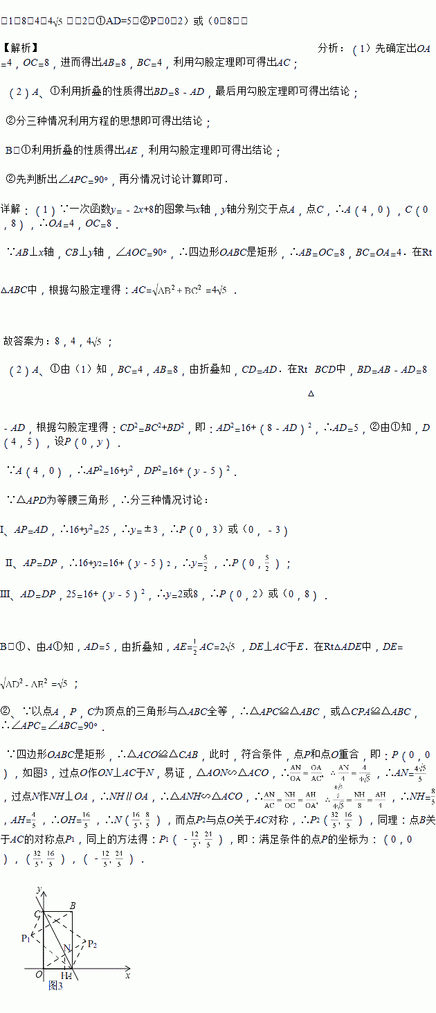 如图1,在平面直角坐标系中,一次函数y=﹣2x+8的图象与x轴,y轴分别交于点A,点C,过点A作AB⊥x轴,垂足为点A,过点C作CB⊥y轴,垂足为点C,两条垂线相交于点B.