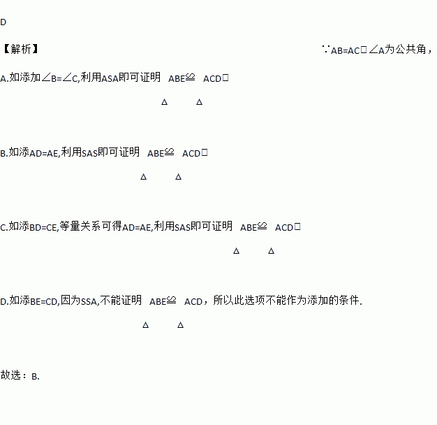 如图,点分别在线段上,CD与BE相交于O点,已知,现添加以下的哪个条件仍不能判定≌