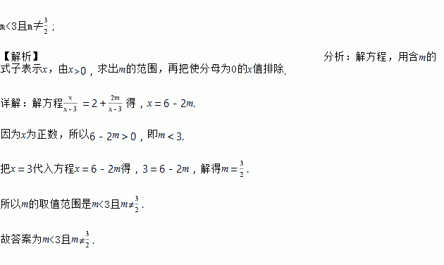 若关于x的方程 =2+的解是正数,则m的取值范围是____________.