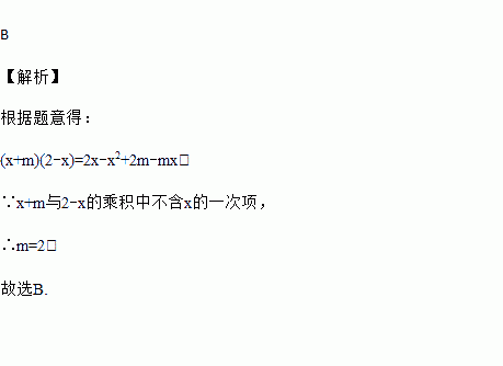 若x+m与2﹣x的乘积中不含x的一次项,则实数m的值为( )