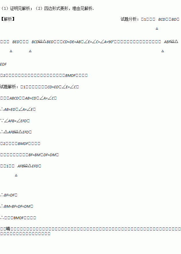 ⑵若将折叠的图形恢复原状,点F与BC边上的点M正好重合,连接DM,试判断四边形BMDF的形状,并说明理由.