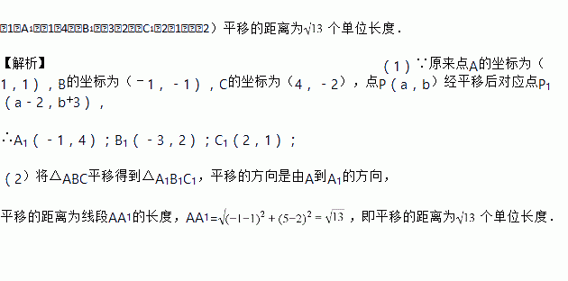 如图,△ABC中,任意一点P(a,b)经平移后对应点P1(a﹣2,b+3),将△ABC作同样的平移得到△A1B1C1.