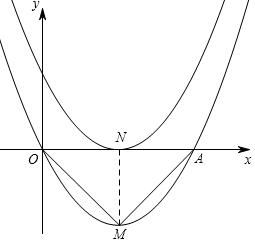 19.抛物线y=$\frac{1}{2}$x2-2x+m与x轴只有一个公共点,把抛物线向下平移使之过原点后,与x轴的另一个交点为A,顶点为M,求△OAM的面积.分析 因为抛物线y=$\frac{1}{2}$x2-2x+m与x轴只有一个公共点,所以△=0,求出m=2,写出解析式,向下平移2个单位后过原点,则平移后的解析式为:y=$\frac{1}{2}$x2-2x,顶点坐标M(2,-2),与x轴另一交点A(4,0),根据三角形面积公式求出△OAM的面积.