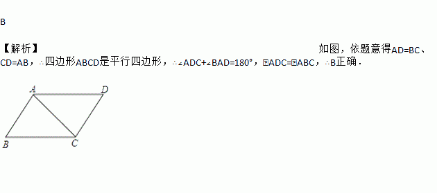 C. ∠ADC与∠ABC互补 D. ∠ADC与∠ABC互余