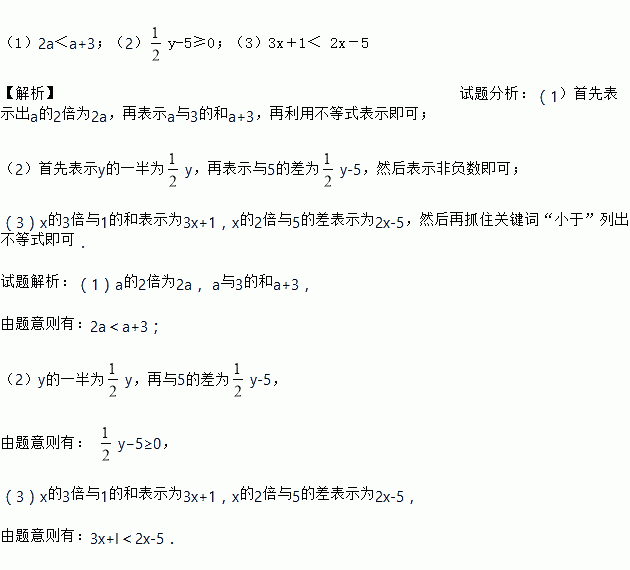 £¨l£©aµÄ2±¶±ÈaÓë3µÄºÍС£» (2)yµÄÒ»°ëÓë5µÄ²îÊǷǸºÊý£»