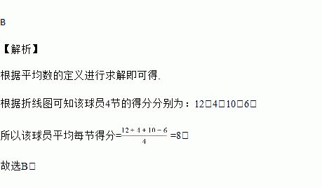 某球员参加一场篮球比赛,比赛分4节进行,该球员每节得分如折线统计图所示,则该球员平均每节得分为( )