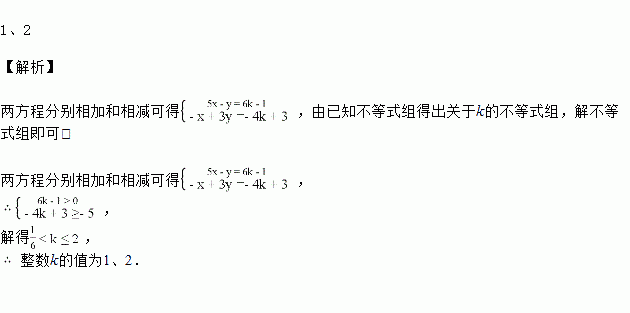 已知关于x、y的方程组的解满足,求整数k的值.