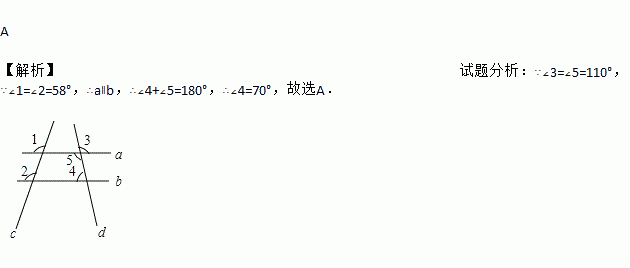 (4分)如图,直线a,b与直线c,d相交,已知∠1=∠2,∠3=110°,则∠4=( )