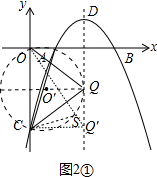 (3)当点Q在线段OC的垂直平分线上时,∠OQC最大,如图2①,![]()