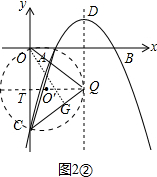 (3)运用圆周角定理和三角形的外角的性质可得:当点Q在线段OC的垂直平分线上时,∠OQC最大,如图2①,过点O作OG⊥CQ于G,如图2②,运用勾股定理可求出OQ、CQ,然后运用面积法求出OG,问题得以解决.
