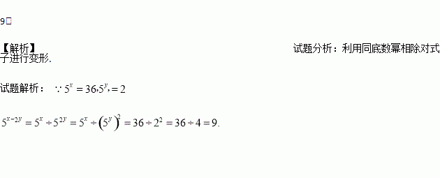 已知5x=36,5y=2,求5x﹣2y的值.