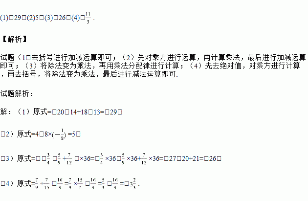 (1)﹣20+(﹣14)﹣(﹣18)﹣13