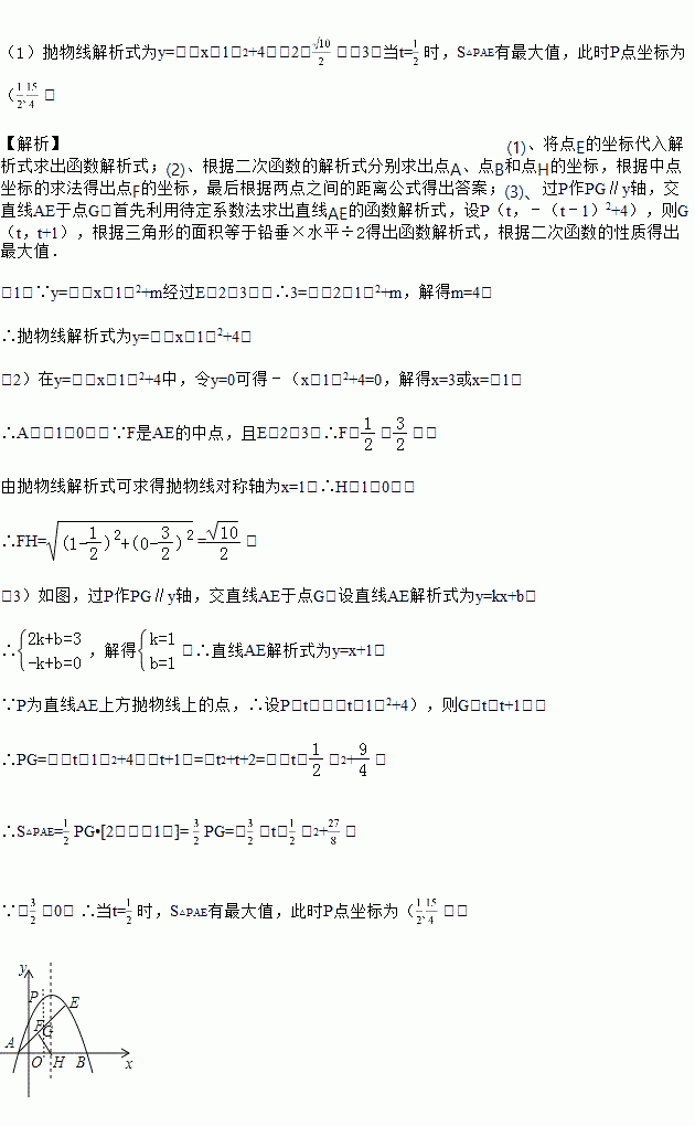 (3)P为直线AE上方抛物线上的点.当△AEP的面积最大时.求P点的坐标.