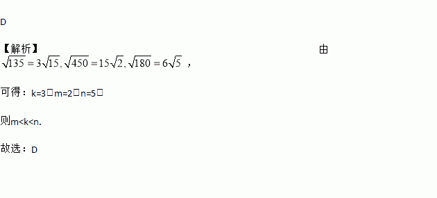 A. k<m=n B. m=n<k C. m<n<k D. m<k<n